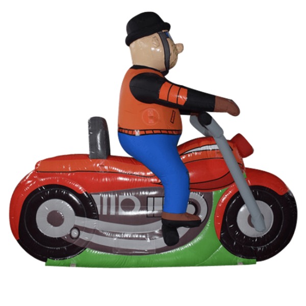 De jarige job dol op motors en motorrijden? Huur dan deze stoere opblaasbare Abraham pop op motor. Natuurlijk geheel compleet met helm en bril voor een stoer uiterlijk.