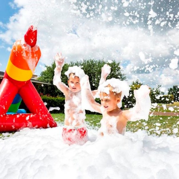 Een complete schuimexplosie, dat is het resultaat met onze Bubble Canon. Binnen no time zal er een enorme schuimberg liggen waarin volop gespeeld kan worden.