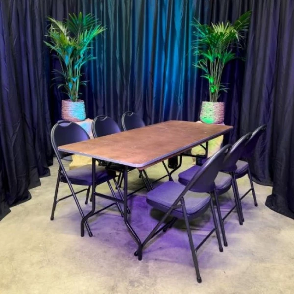 Wanneer je een goedkope stoel wilt huren voor een gelegenheid zijn deze klapstoelen de perfecte uitkomst. Daarnaast zijn ze zéér snel te plaatsen en als het nodig is ook direct weer op te bergen. Deze klapstoel is gemaakt van zwart duurzaam kunststof en een hamerslag onderstel. Dat maakt deze klapstoel zéér stevig en daarmee geschikt voor uiteenlopende gelegenheden.
