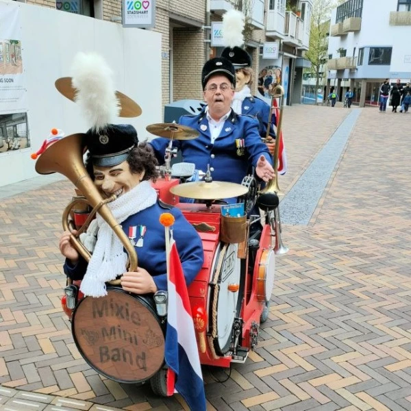 Vanuit een rode kar vol slaginstrumenten, accordeon en geluidsinstallatie zorgt deze Mixie Band voor dé muzikale noot. Zodra men deze band op wielen ziet, verschijnen er vaak al camera’s om de unieke verschijning vast te leggen.