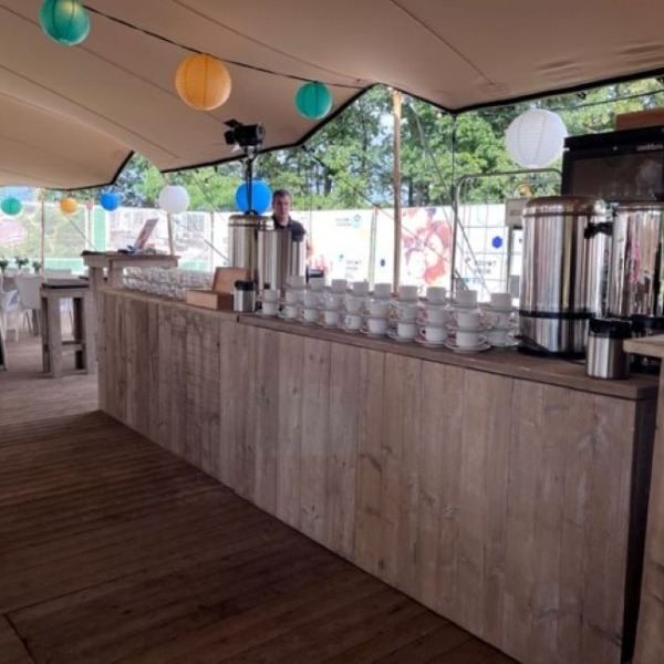Onze ombouwbar steigerhout past mooi op je tapinstallatie of koelbuffet heen.