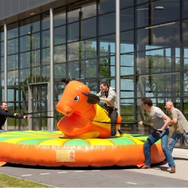 Iedereen tot 60 KG. kan een ritje maken op dit spetterende rodeopaard. Yeeeehaaaaa!