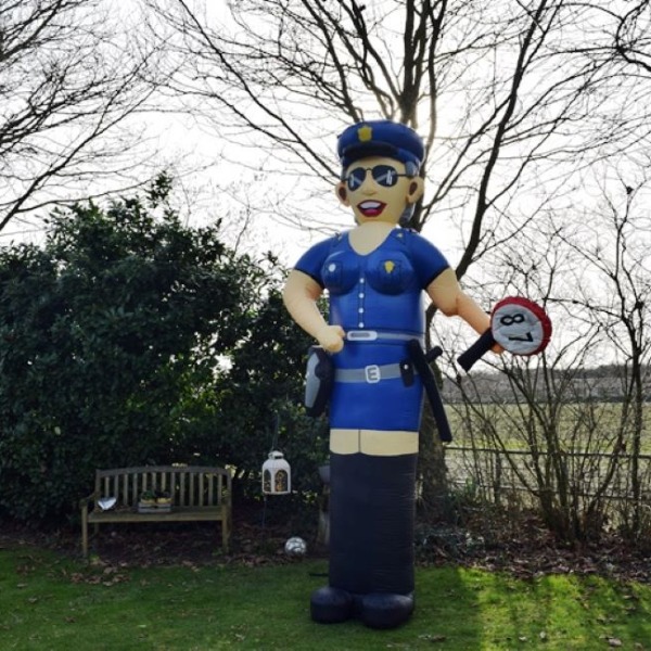 Werkt je vriendin, zus of moeder bij de politie? Verras haar dan met een opblaasbare Sarah pop politie. Deze opblaaspop is 3,8 meter hoog en zal goed opvallen in de straat.