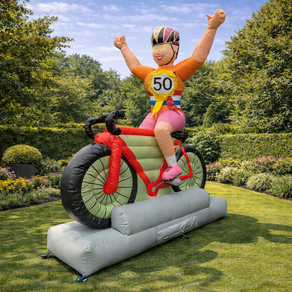 Opblaasbare Sarah op de fiets pop en meer