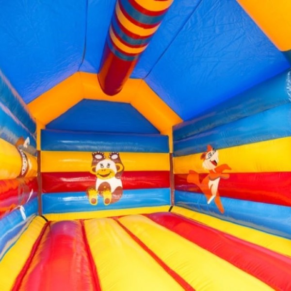 Dit springkussen huur je volledig overdekt en heeft dus een vast dak. Hierdoor is het klimmen over zijwanden niet mogelijk en zijn kinderen goed beschermd tegen zon en regen. Laat ook jij binnenkort de apenkop bouncen..